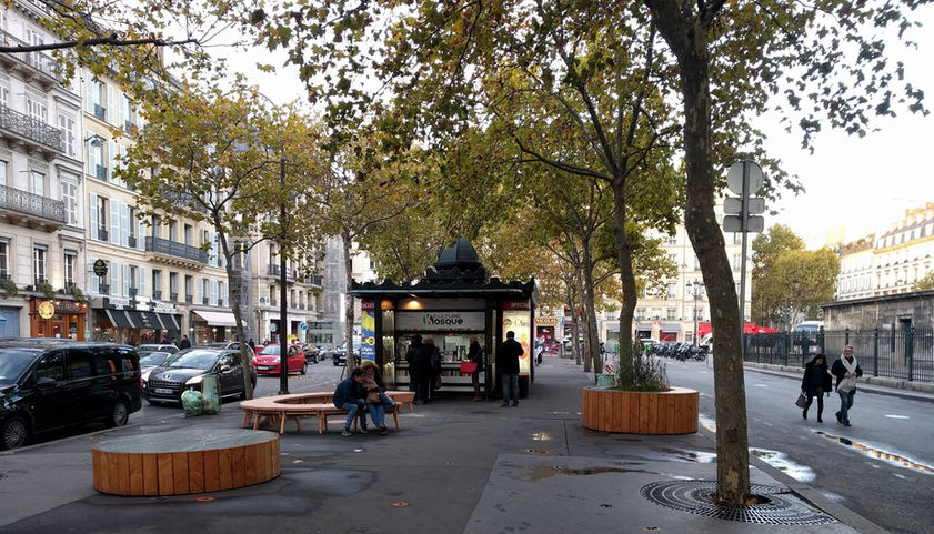 Les MonumentalEs est un collectif missionné par la ville de Paris pour accompagner la transformation des places du Panthéon et de la Madeleine. Il regroupe le Collectif ETC, Emma Blanc Paysage, Genre et Ville, Albert et Compagnie et Ligne BE. Ensembles, ils sont chargés de repenser ces deux places afin de les rendre plus accessibles aux piétons, créant ainsi de nouveaux usages, une nouvelle forme d'occupation et une diversité des publics. Des mobiliers en bois tels sont installés afin de proposer une variété d'usages non figés. Ils sont associés à des matériaux de réemploi tels que des barrières Vauban ou des bordures de trottoirs détournés, qui restent dans leur usage de mobilier urbain mais prennent une toute autre forme.